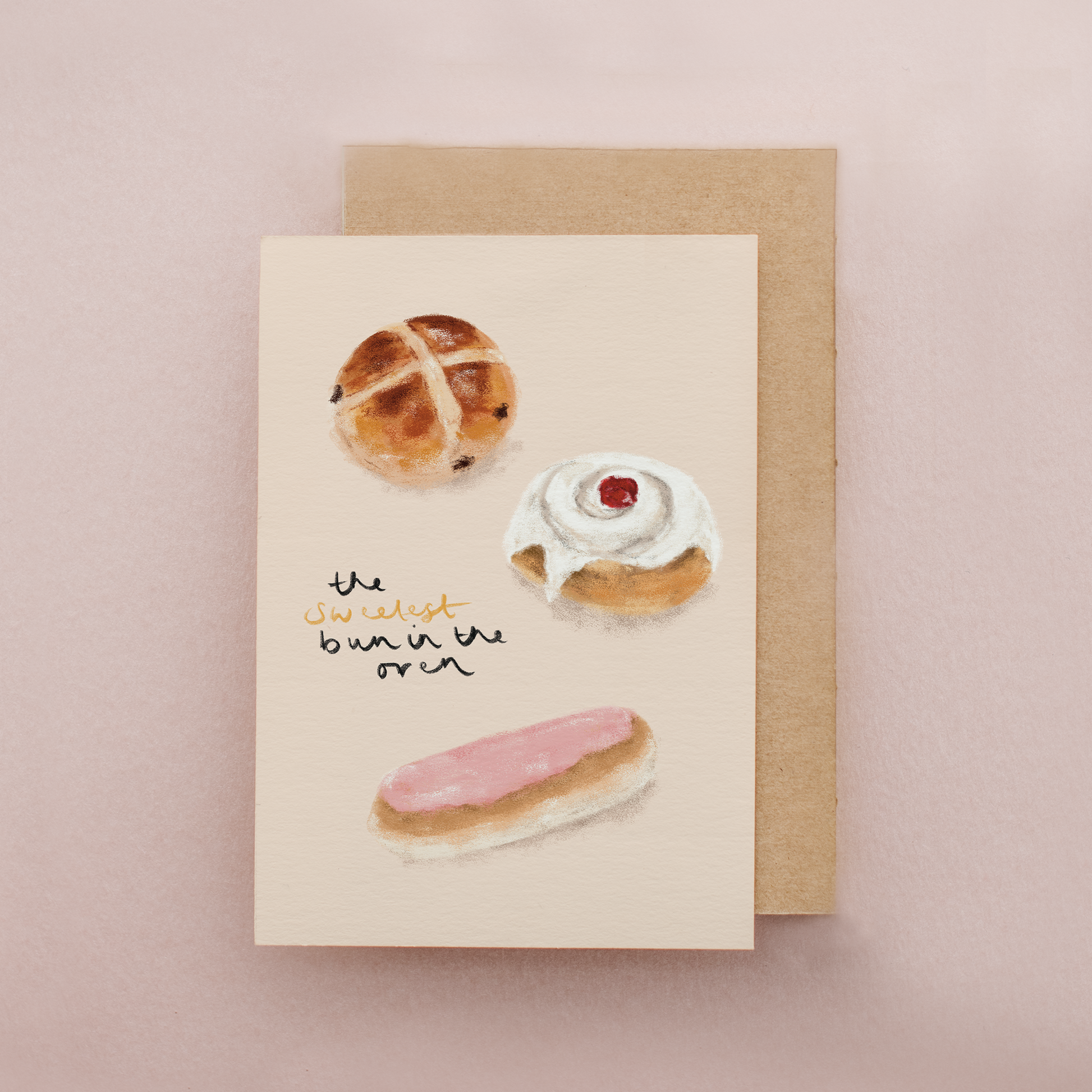 Send new parents or newly pregnant friends or family a message of joy with this sweet bun in the oven design.