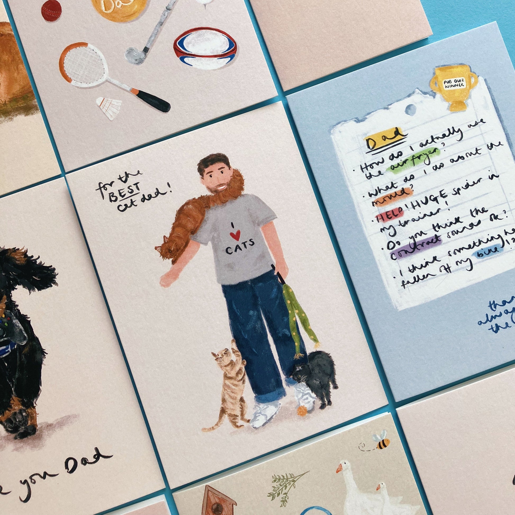 Cat Dad is A6 and measures 105mm x 148mm. It's printed onto FSC certified card and printed in Sheffield.