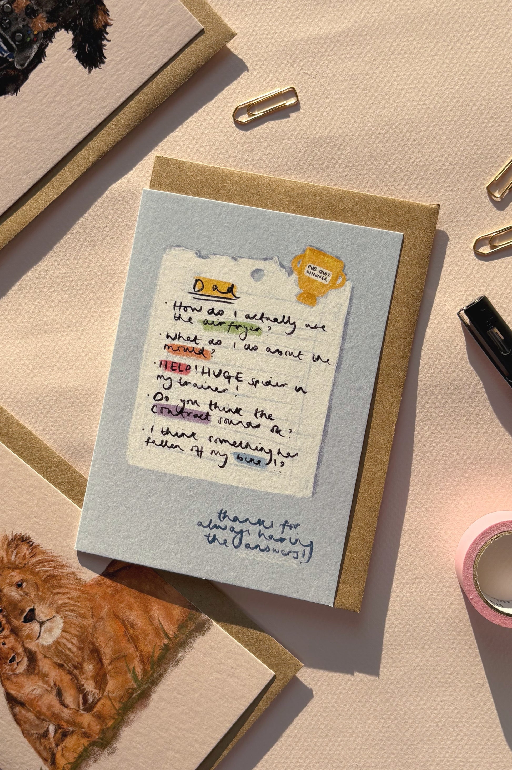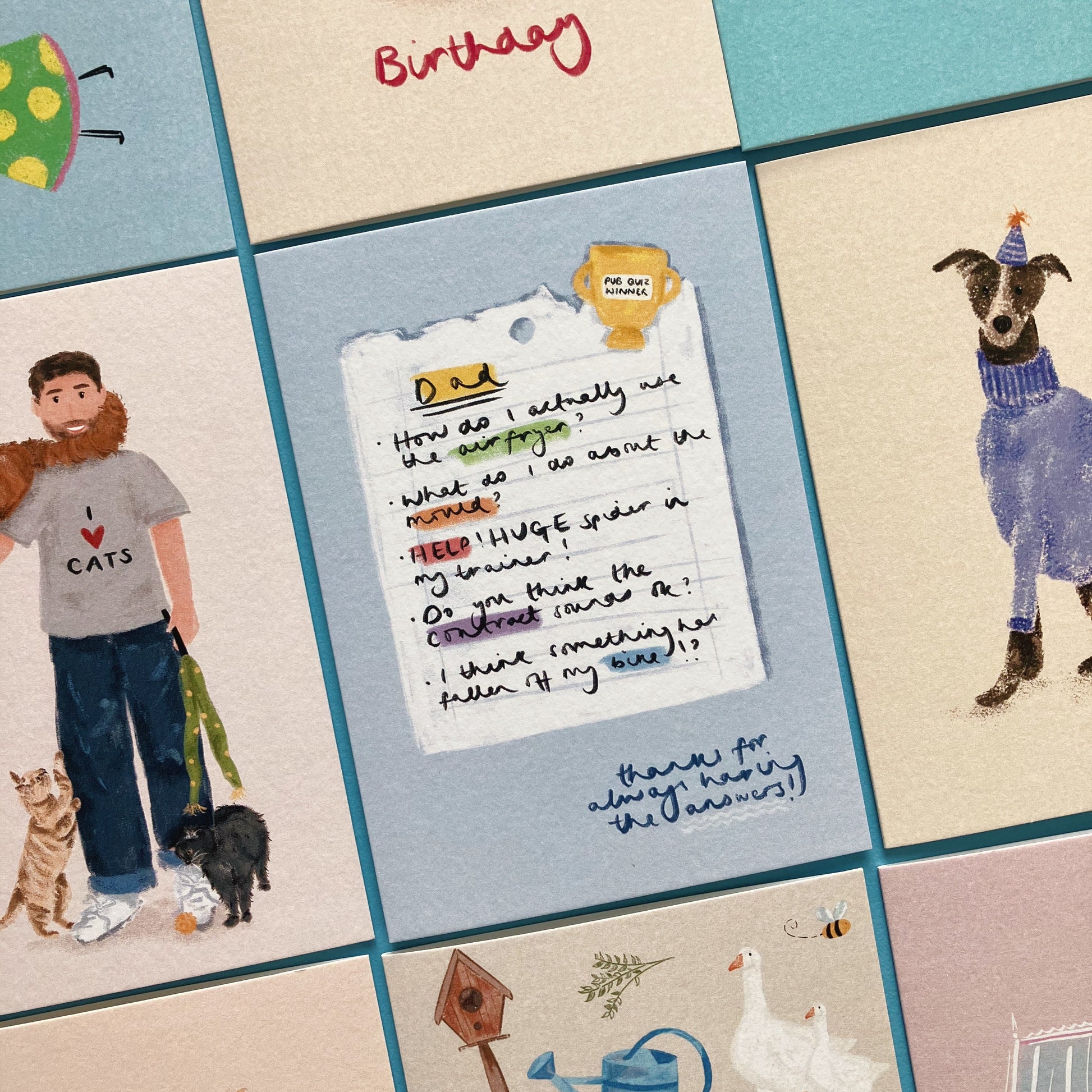 Dad to the Rescue is A6 and measures 105mm x 148mm. It's printed onto FSC certified card and printed in Sheffield.