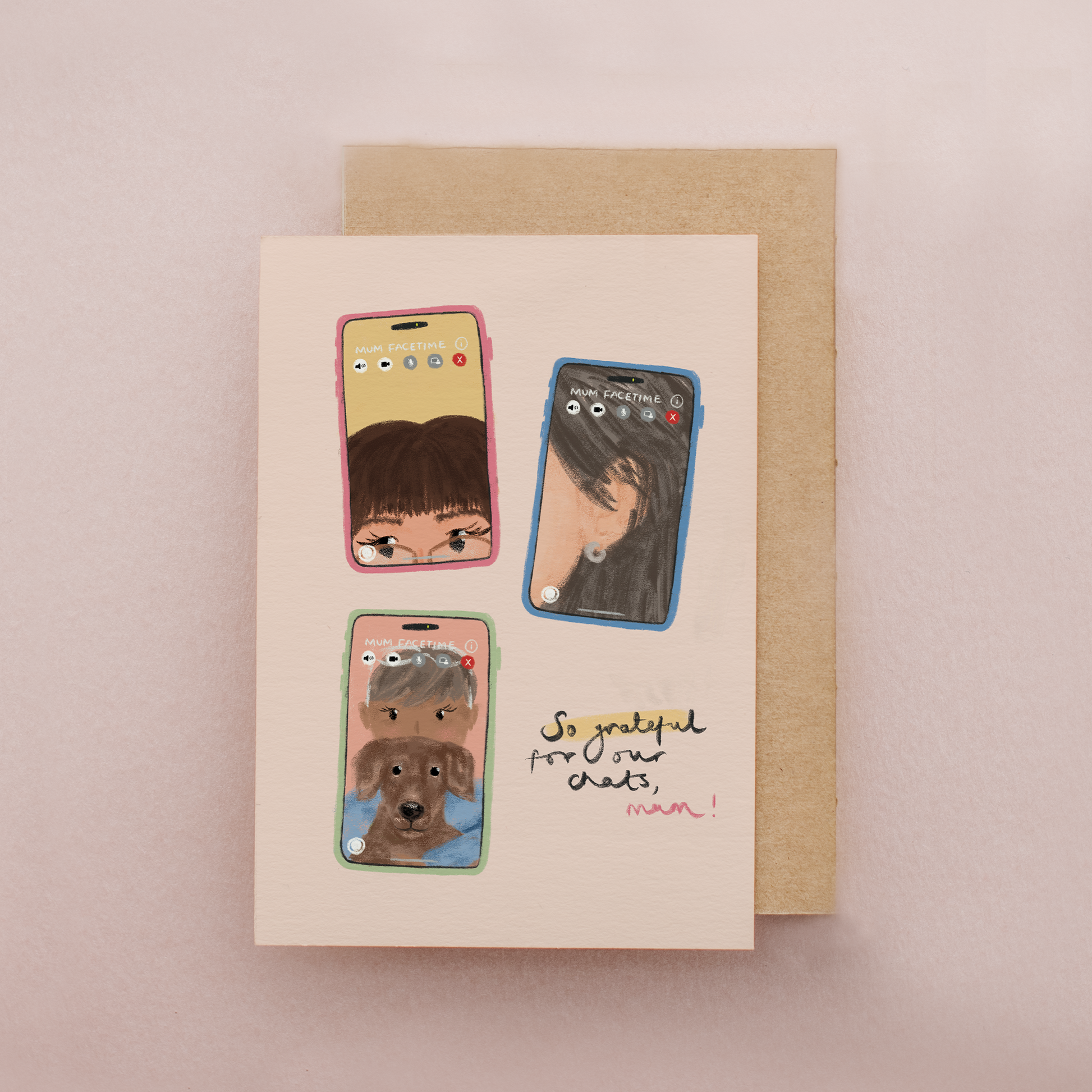 Facetimes with Mum is A6 and measures 105mm x 148mm. It's printed onto FSC certified card and printed in the UK.