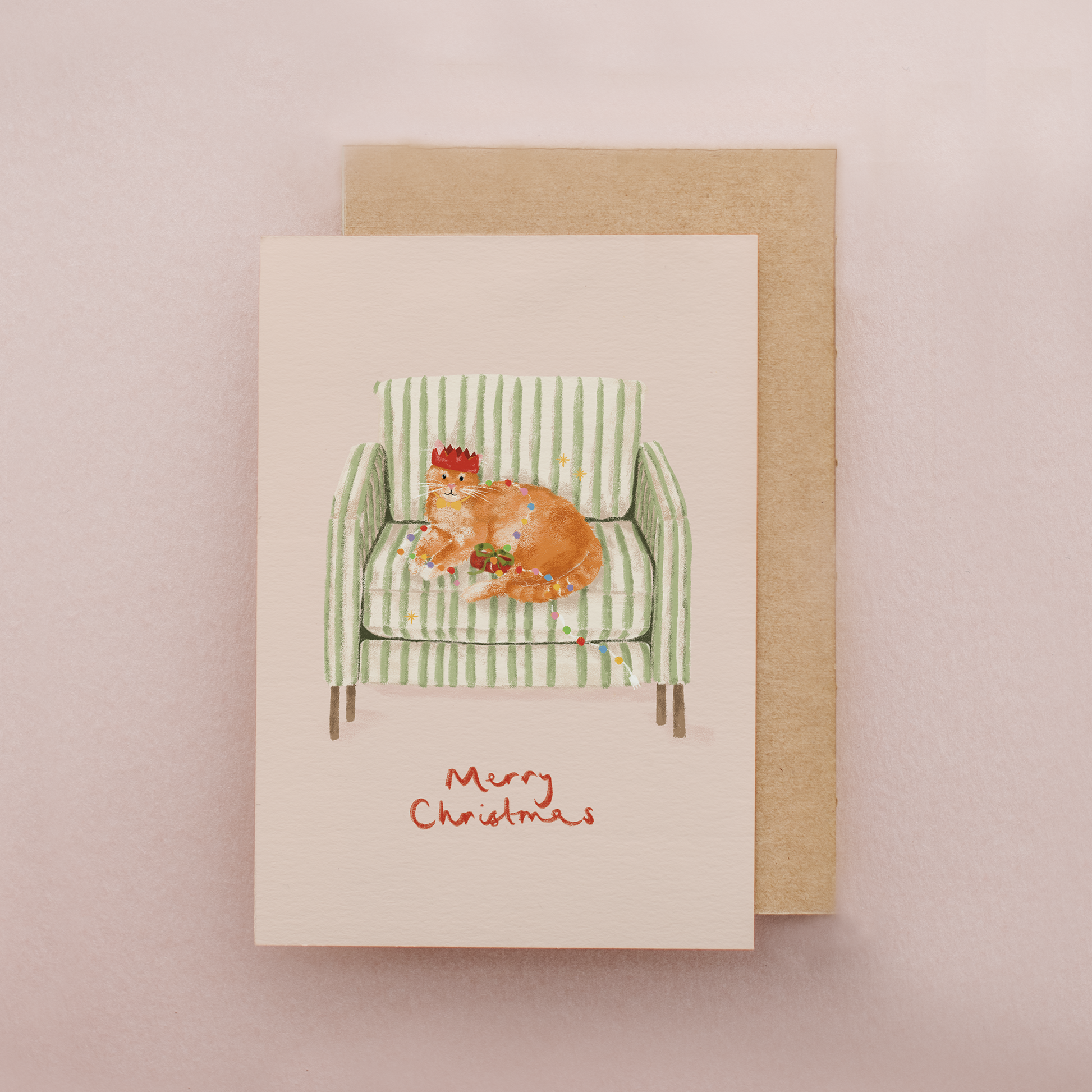 From my brand new Christmas range, this pesky cat wrapped in lights would be the perfect design to send some love this winter.