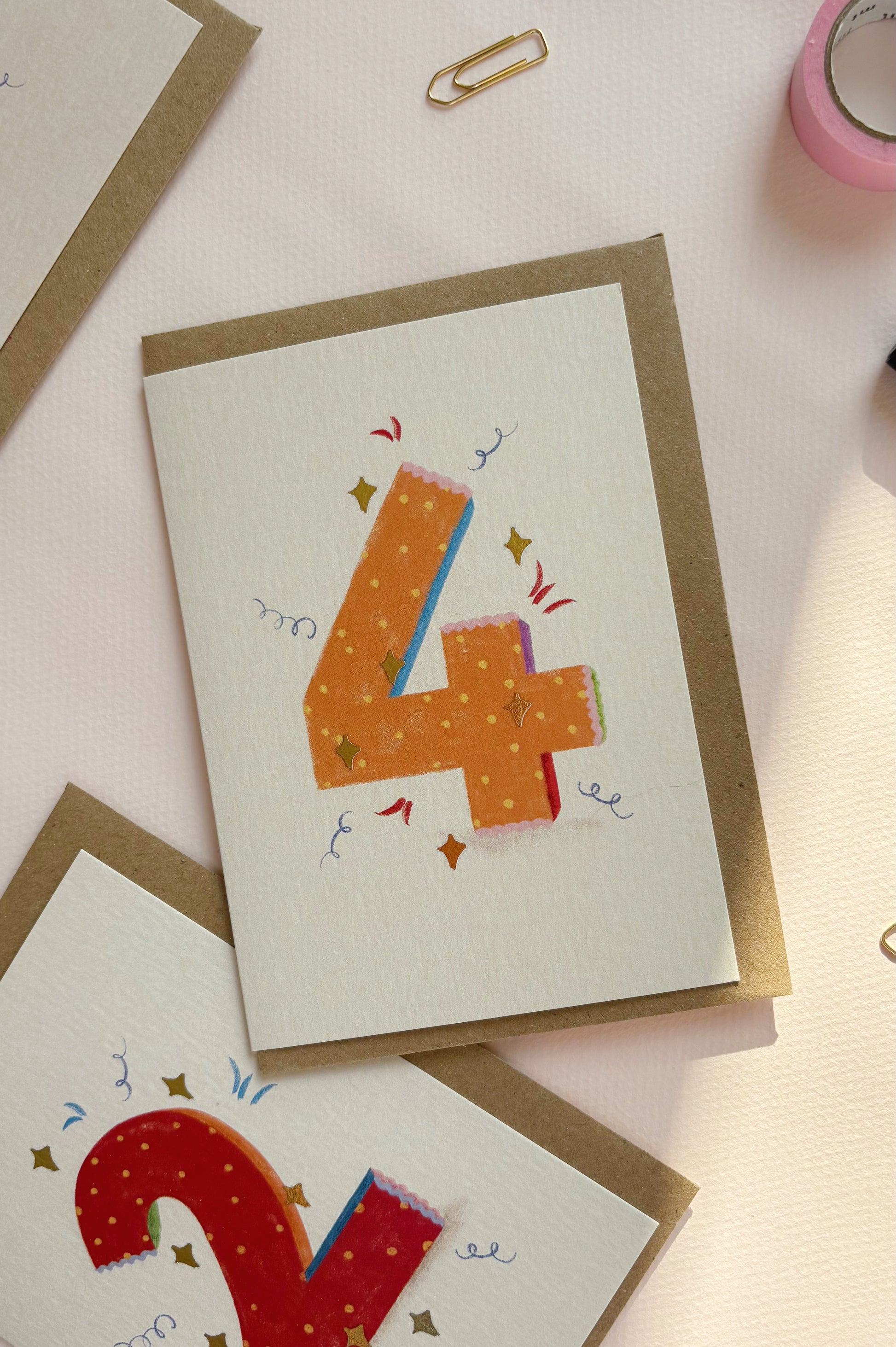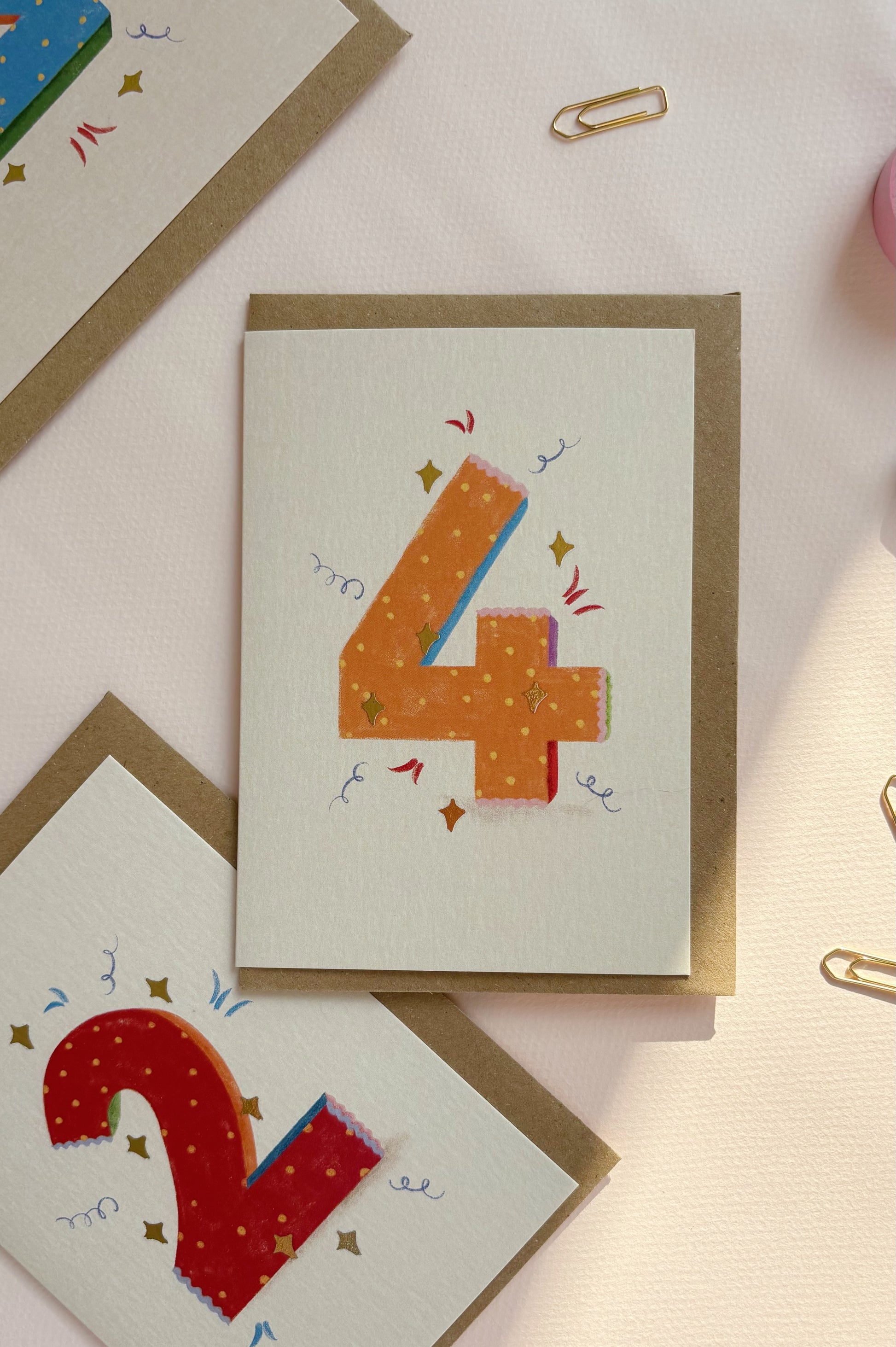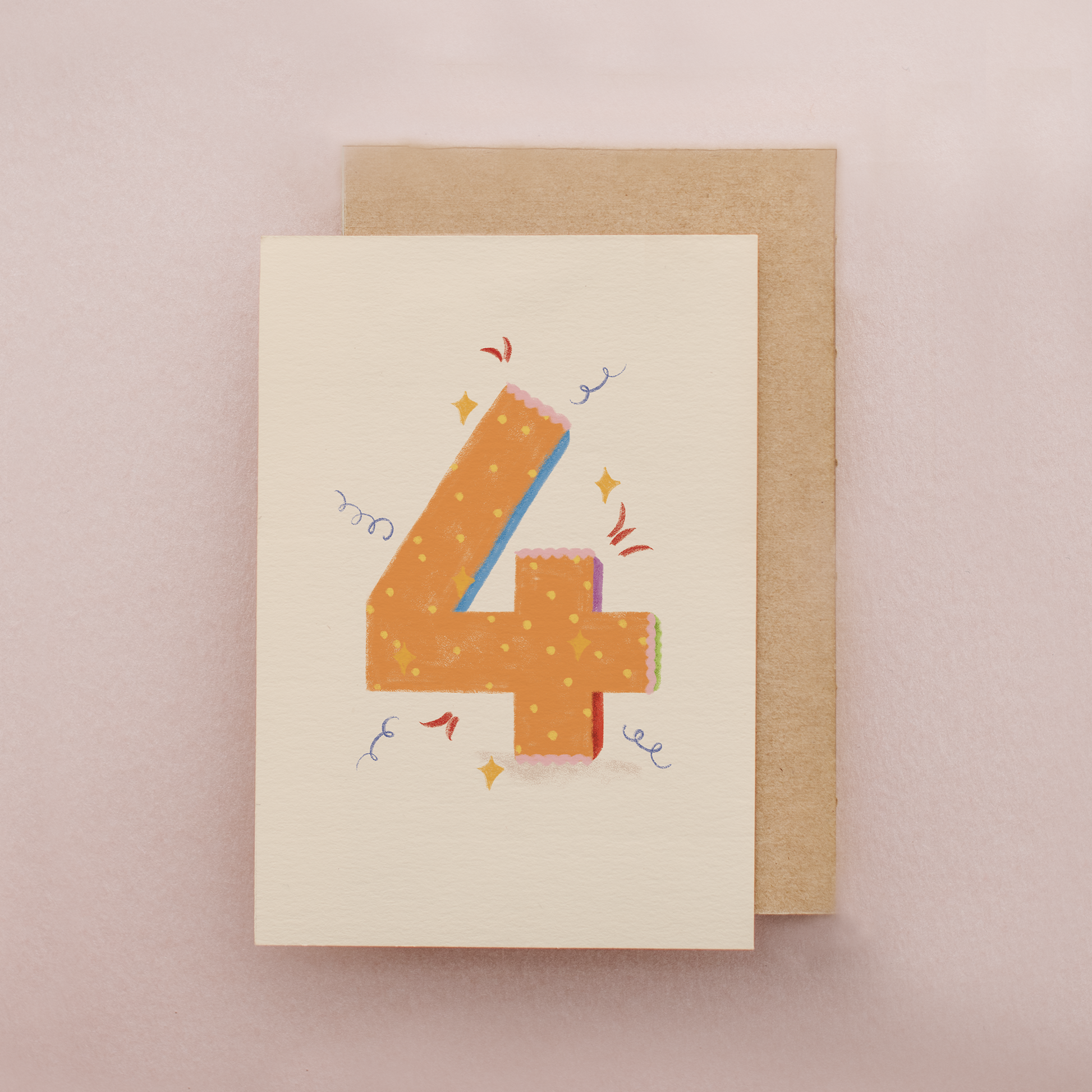 Send your favourite little ones or their families a message of joy with this celebratory number 4 card. Or perfect for anyone who’s celebrating 4 of something!