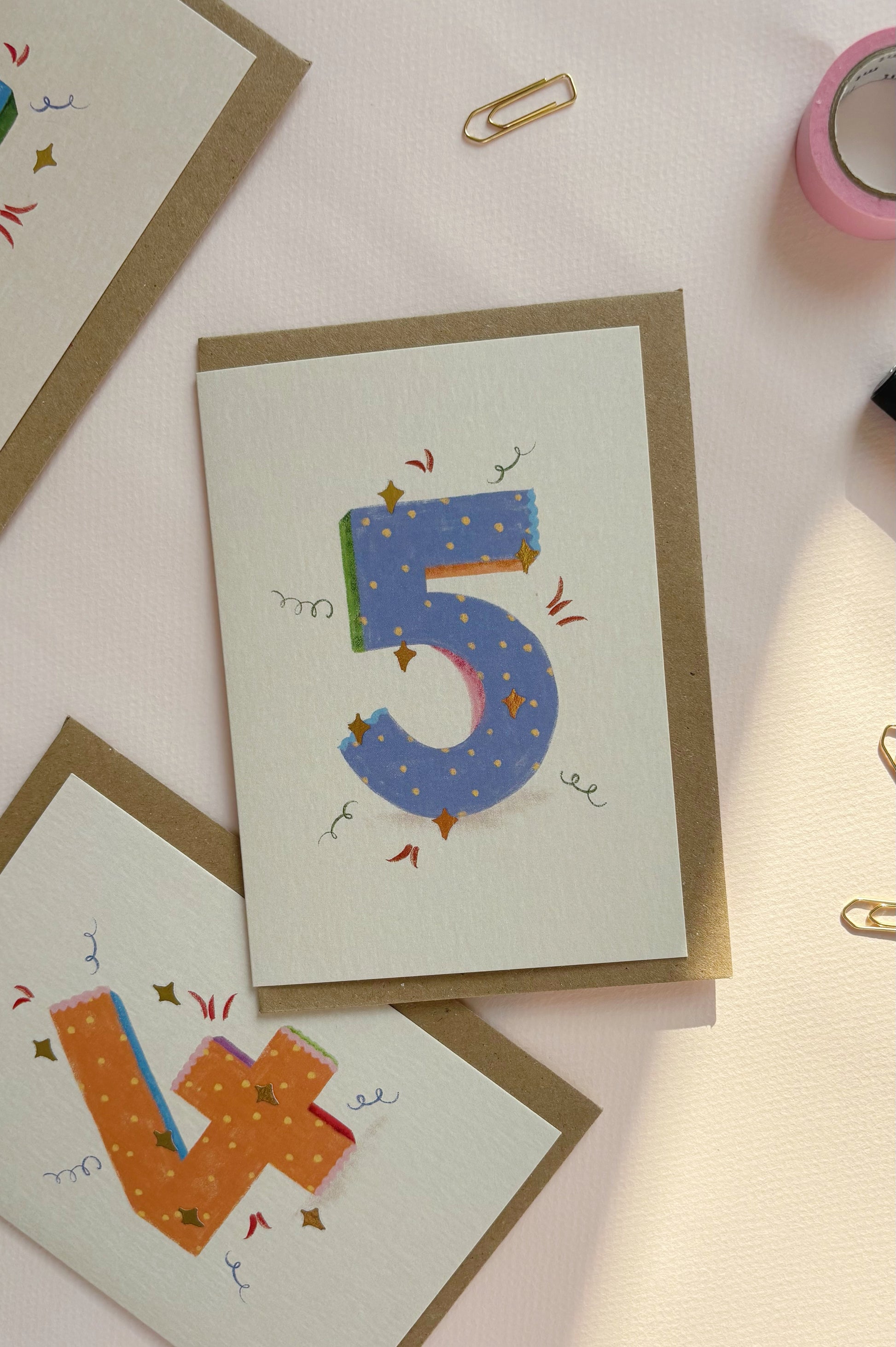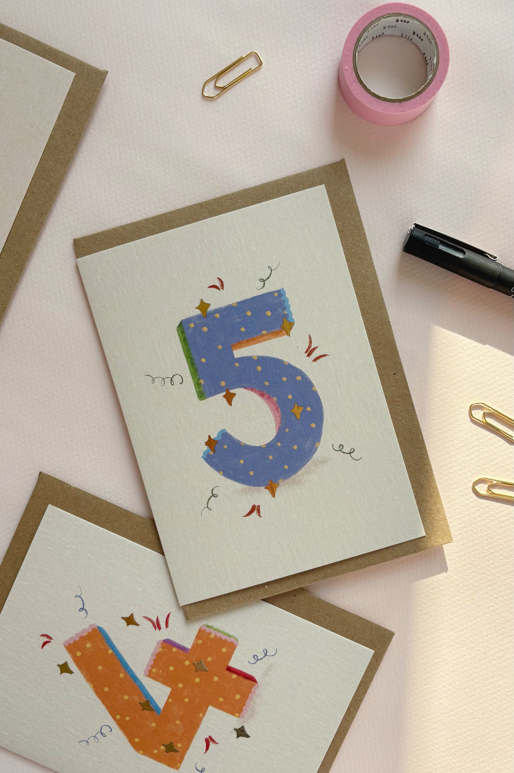 Send your favourite little ones or their families a message of joy with this celebratory number 5 card. Or perfect for anyone who’s celebrating 5 of something!