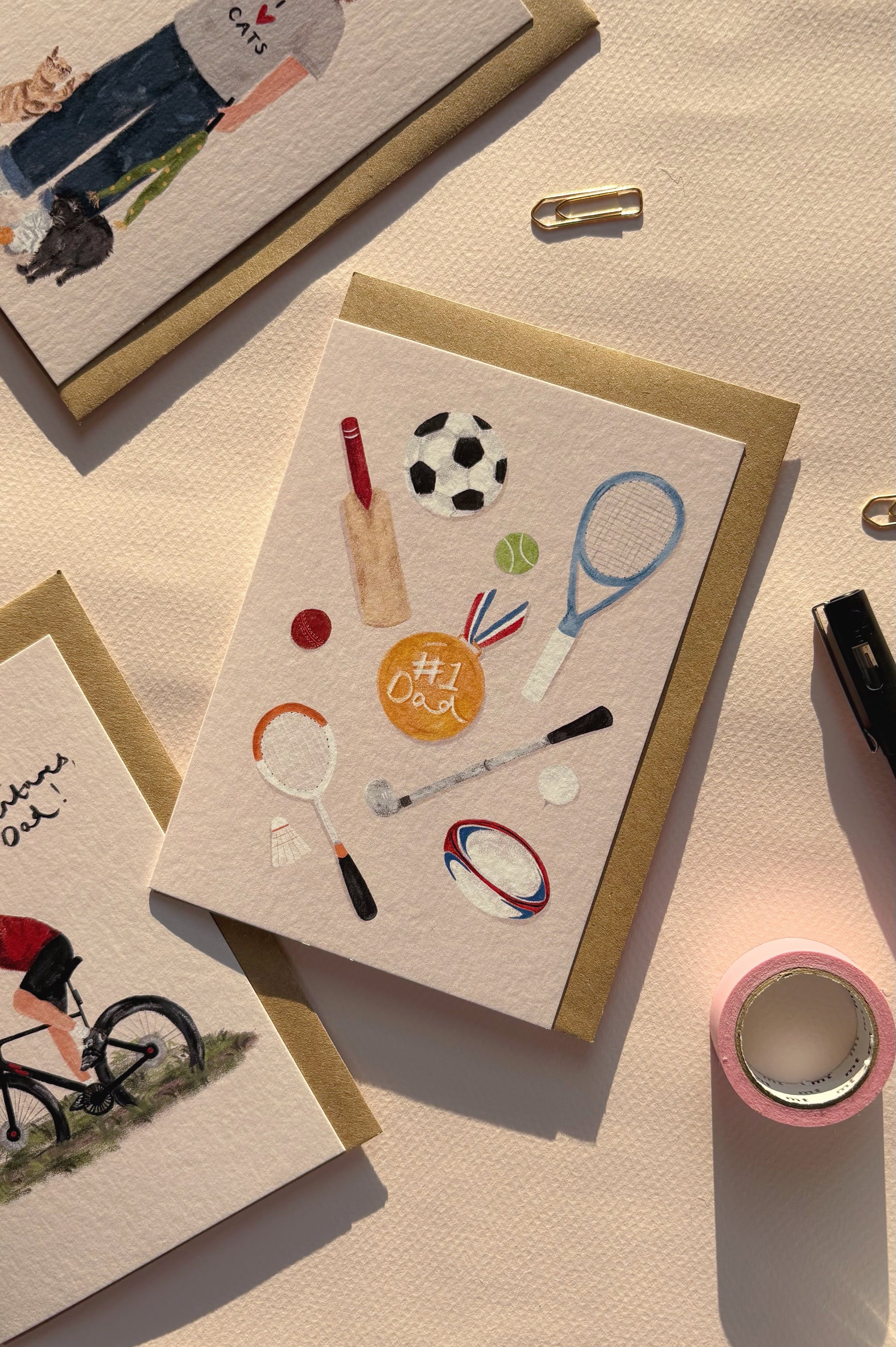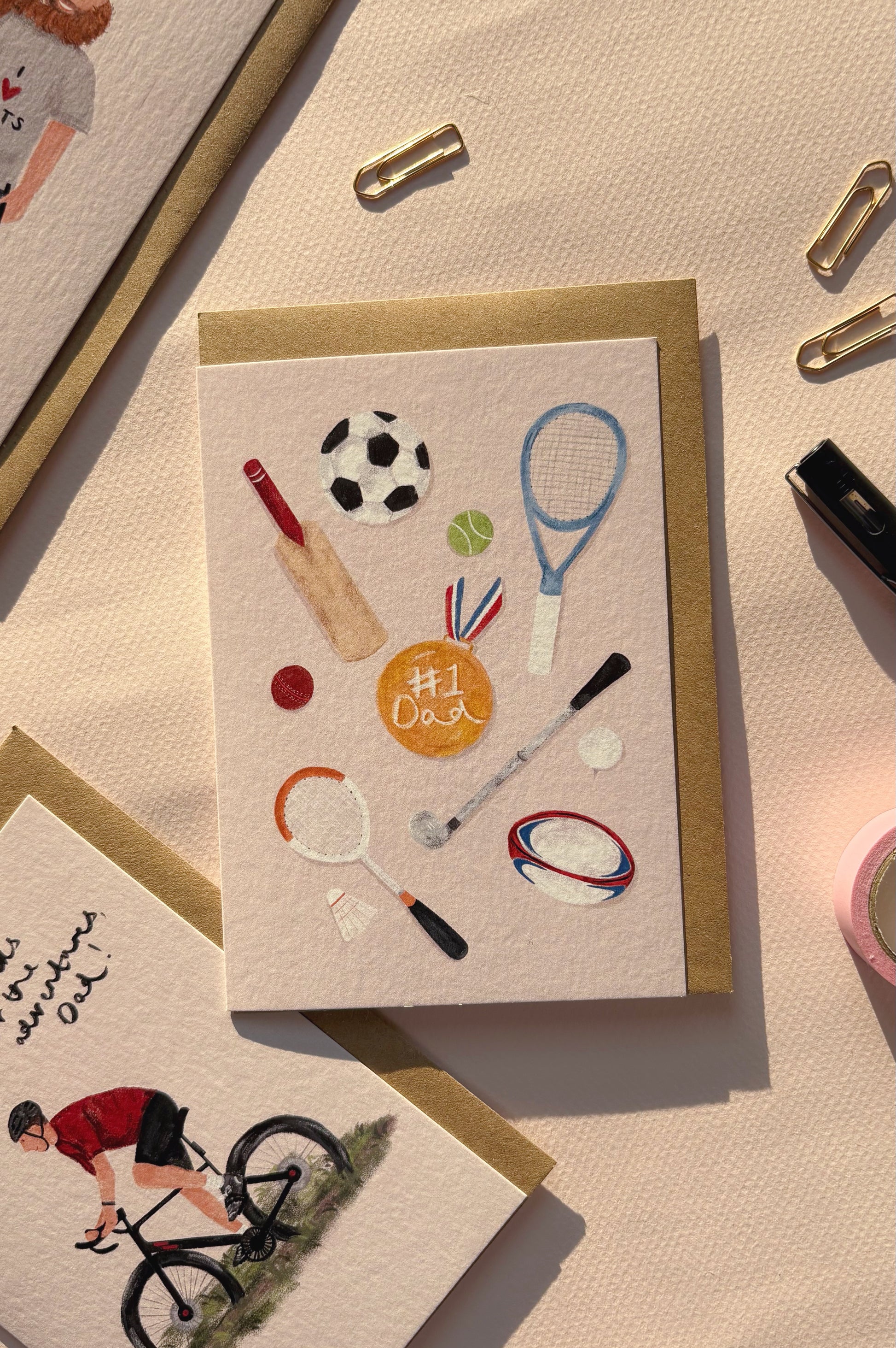 Sporty Dad is A6 and measures 105mm x 148mm. It's printed onto FSC certified card and printed in Sheffield.