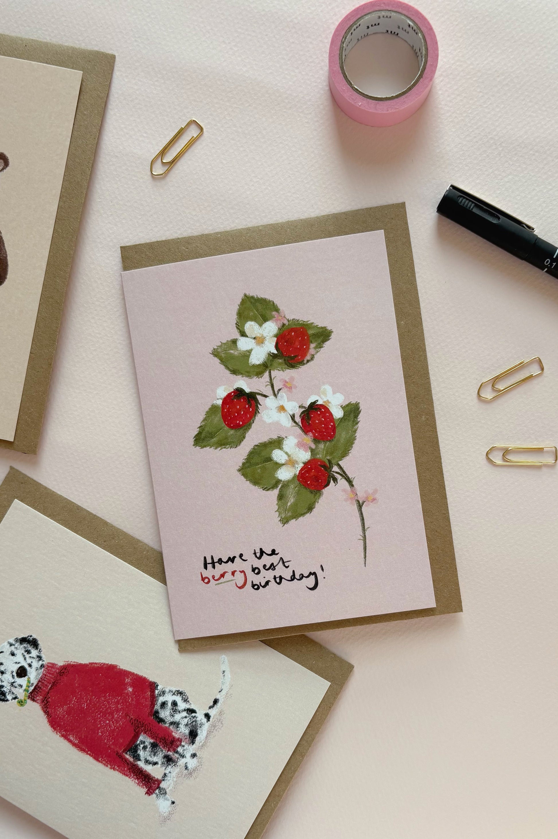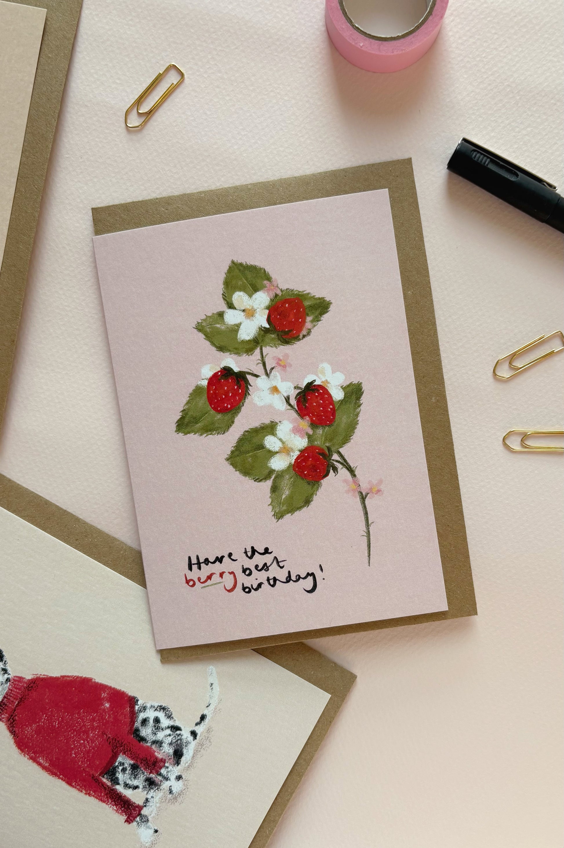Strawberries is A6 and measures 105mm x 148mm. It's printed onto FSC certified card and printed in Sheffield.