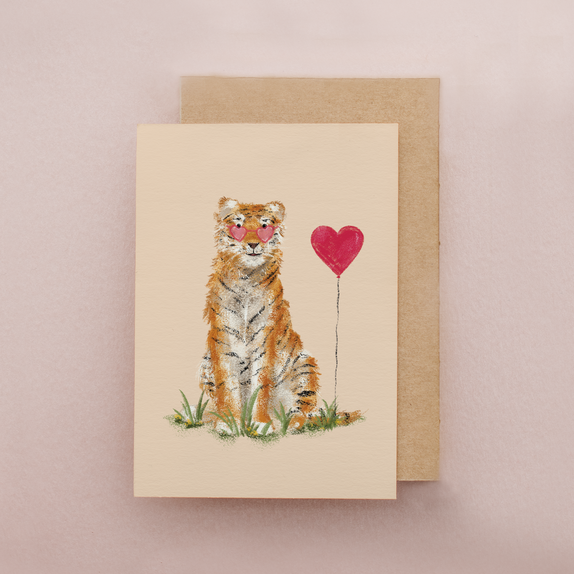 Nothing vicious about this tiger with his rose tinted glasses and love-heart balloon.
