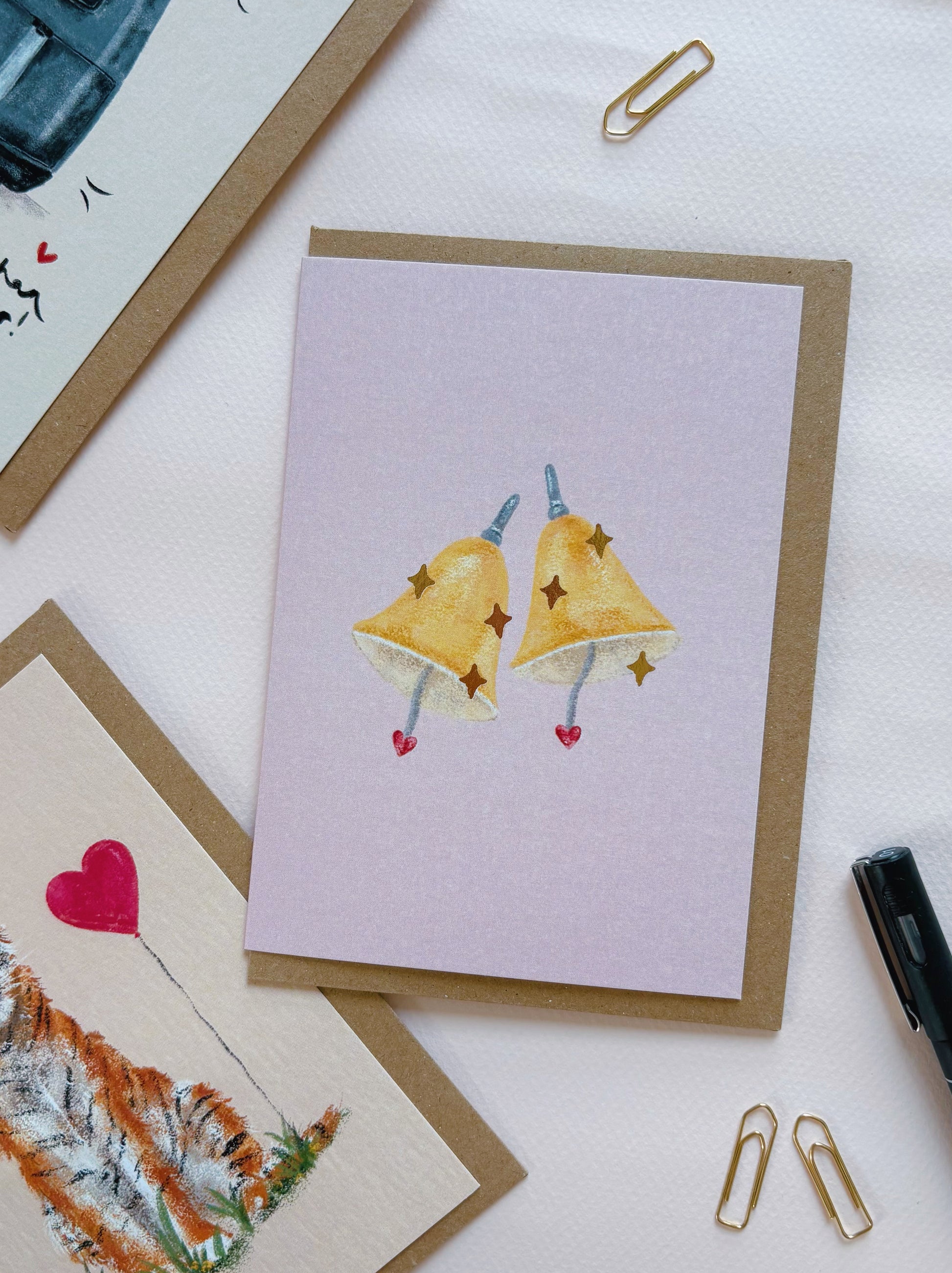 Send your newly engaged or married friends/family a message of love and congratulations with this delicate wedding bells card complete with gold foiled stars.