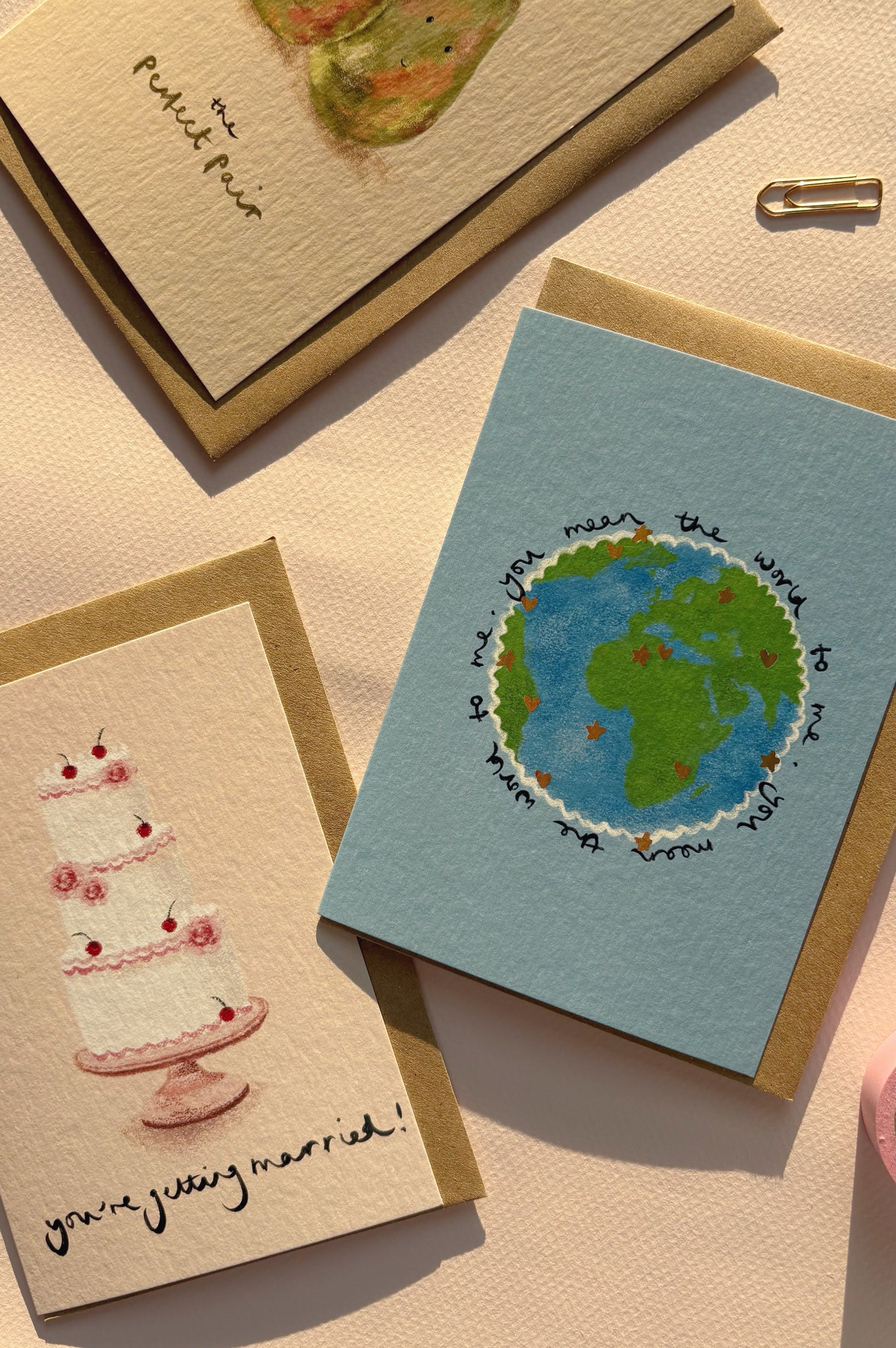 World To Me is A6 and measures 105mm x 148mm. It's printed onto FSC certified card and printed in Sheffield.