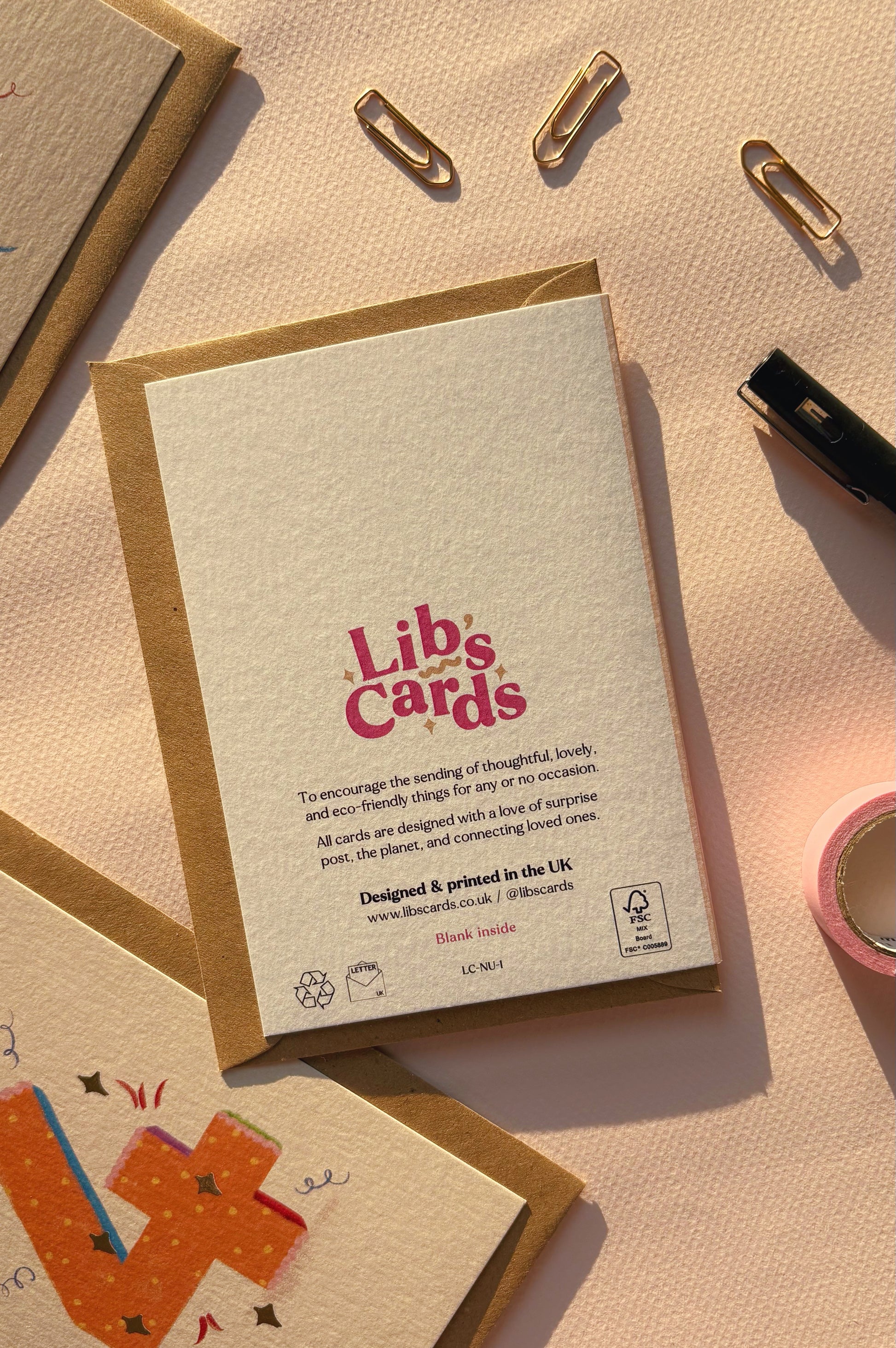Lib's Cards are drawn digitally by me and made with huge amounts of love. All cards come with a recycled brown envelope and are blank inside.